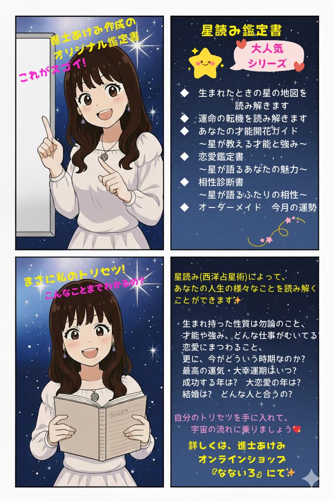 特に人気があるのがこの星読みの鑑定書シリーズです